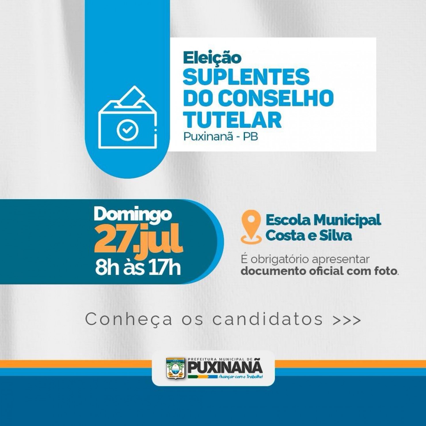 Atenção Puxinanã: eleição para suplentes do Conselho Tutelar acontece em 27 de julho