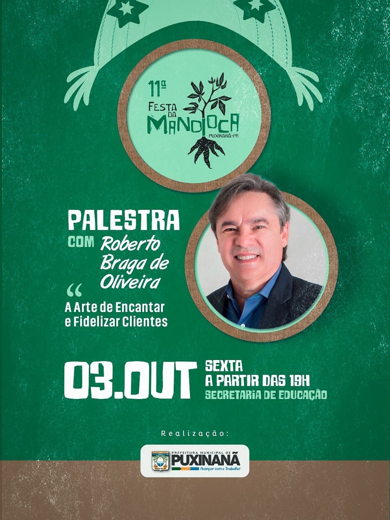 Em preparação para a 11ª Festa da Mandioca, a Prefeitura de Puxinanã vai realizar, no dia 3 de outubro, uma palestra voltada para o fortalecimento do comércio local e capacitação dos empreendedores.