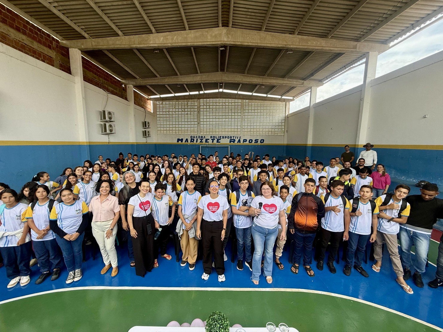 Durante a manhã, a programação movimentou a Escola Marizete Raposo. O diálogo direto com os estudantes foi conduzido por uma equipe técnica e institucional da gestão, contando com a presença da secretária da Mulher, Elisângela Nascimento; da secretária adjunta da Mulher, Carla Felinto; e da assessora jurídica da Casa dos Conselhos, Michelen Helia. As atividades na instituição também se estenderam para as turmas do turno da tarde.