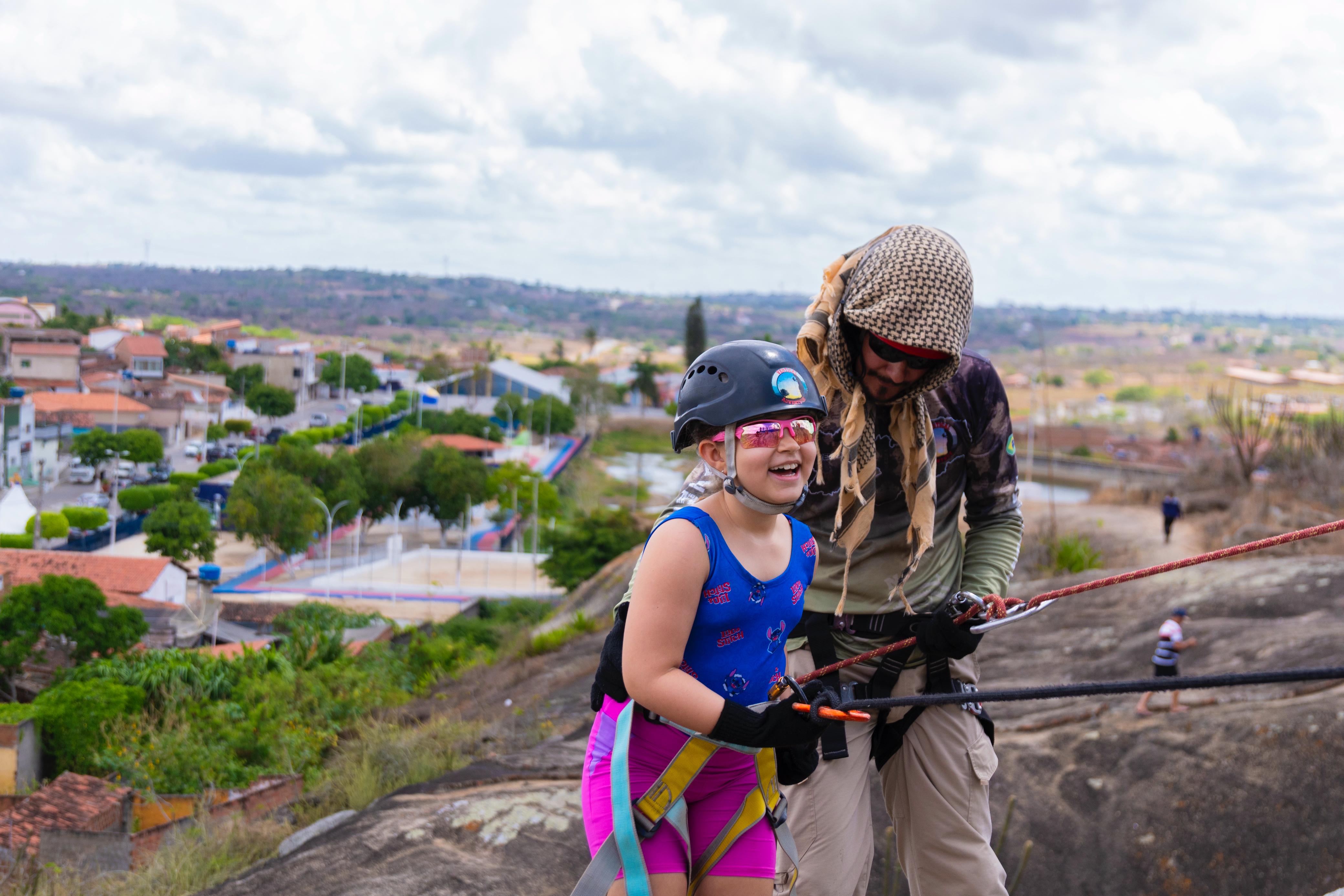 Encerrando a programação do dia, o público também pôde vivenciar uma experiência cheia de adrenalina com o Rapel da Emancipação, realizado na Pedra do Letreiro, um dos pontos mais simbólicos de Puxinanã. Aberto ao público e sem necessidade de inscrição prévia, o rapel proporcionou aos participantes a oportunidade de ver a cidade por um novo ângulo. Cada participante teve direito a uma descida, em uma atividade que uniu aventura, contemplação da paisagem e contato com a natureza.