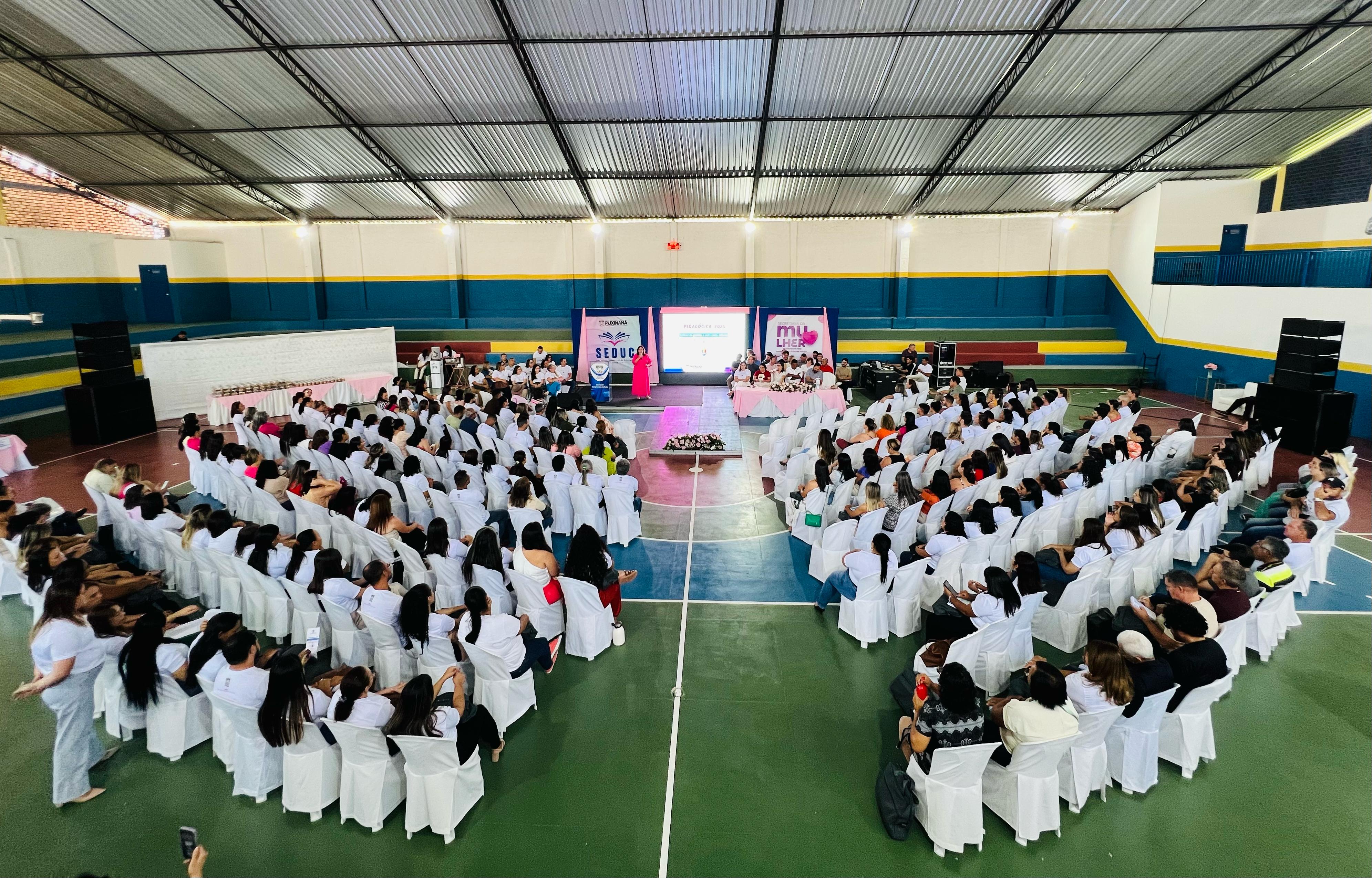 A Secretaria de Educação, realizou nesta terça-feira (18) a abertura da Jornada Pedagógica 2025. O evento, que segue até quinta-feira (20), tem como tema “Edificando Pontes e Cultivando Valores: Educação e Família, a Sinergia que nos Move”. A cerimônia aconteceu no Ginásio de Esportes O Mirandão e contou com a presença da prefeita Eleuza de Oliveira, da vice-prefeita Gisele Agripino, além de gestores escolares e educadores do município.