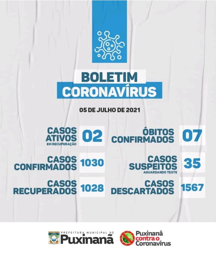 Boletim epidemiológico atualizado, em: 05/07/2021