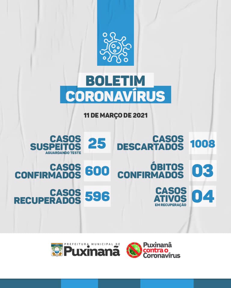 Boletim epidemiológico atualizado, em: 11/03/2021