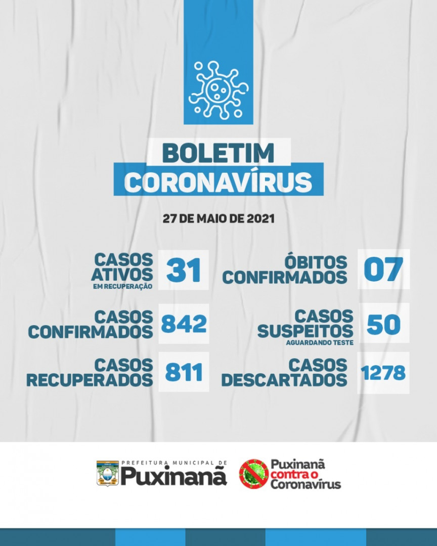 Boletim epidemiológico atualizado, em: 27/05/2021