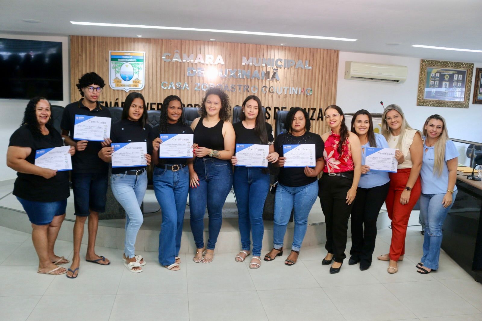 No período da tarde, a programação seguiu com a entrega dos certificados dos Cursos Profissionalizantes, realizada na Câmara Municipal Zoroastro Coutinho, por meio da Secretaria de Assistência Social. O momento celebrou a conclusão de mais uma etapa na formação de cidadãos preparados para o mercado de trabalho, fortalecendo a geração de renda, o empreendedorismo e a autonomia dos participantes. A iniciativa reforça o papel da política de assistência social na transformação de vidas e na construção de novas oportunidades.