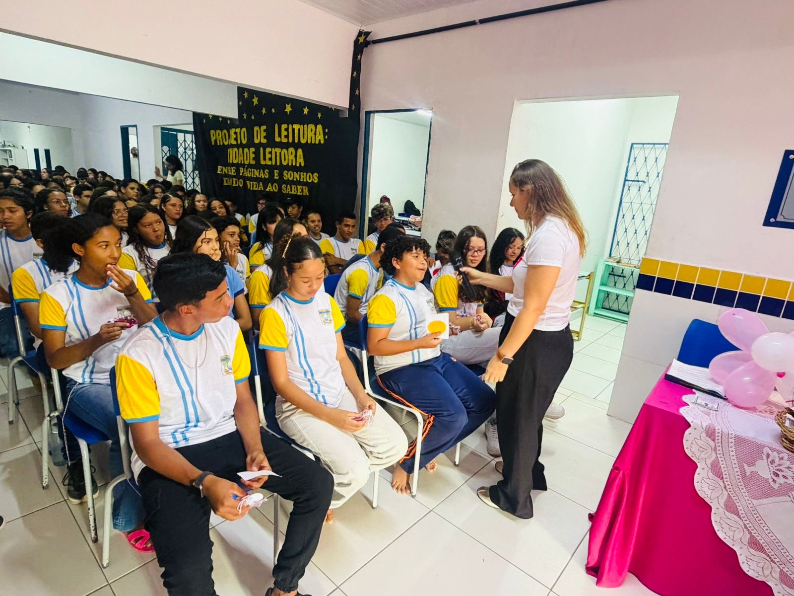 O foco das ações foram os alunos matriculados nos 8º e 9º anos, que participaram de rodas de conversa voltadas para a conscientização sobre os direitos femininos, o respeito mútuo e a prevenção a todos os tipos de violência.