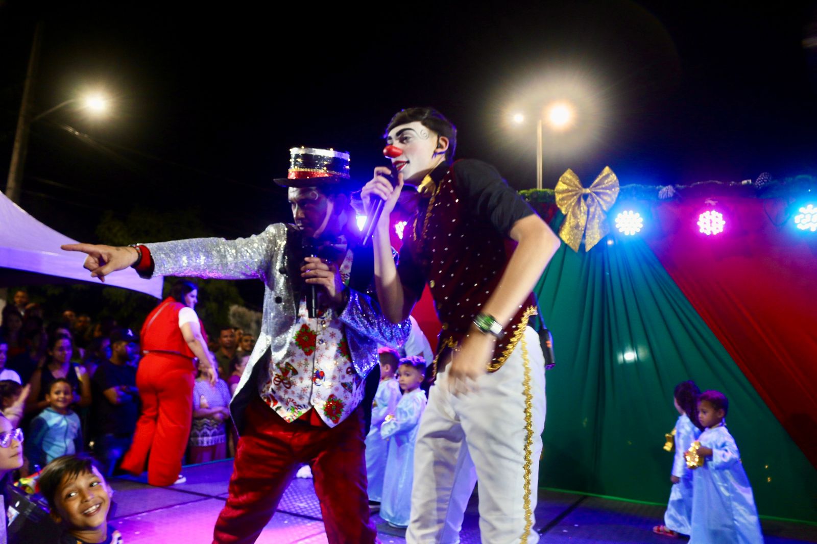 A abertura contou com o acendimento das luzes, deixando o espaço ainda mais iluminado e acolhedor para receber as famílias puxinanaenses. A chegada do Papai Noel também foi um dos momentos mais aguardados, especialmente pelas crianças, que lotaram o local para dar as boas-vindas ao bom velhinho. A programação da noite também trouxe a participação especial da Creche Filismina Gonçalves de Queiroz, que realizou uma bela apresentação.
