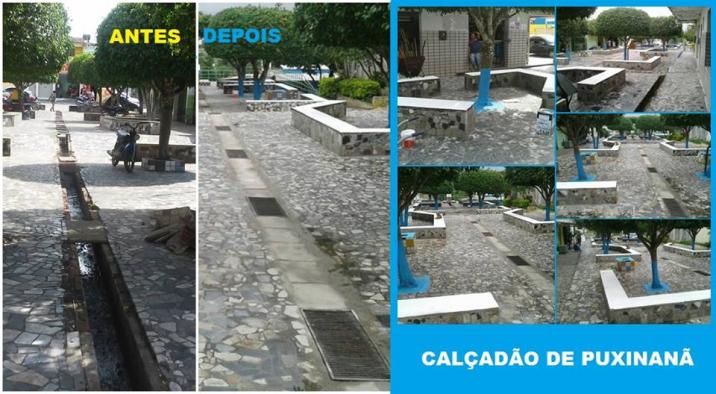 A Prefeitura Municipal de Puxinanã, através da Secretaria de Infraestrutura, está realizando a revitalização do calçadão Beto Idalino em Puxinanã, o mesmo encontrava-se em situação de risco a acidentes devido ás passagens de esgoto no meio estarem algumas delas quebradas e outras faltando a grade, todavia, pensando na segurança e bem estar da população este reparo foi realizado.